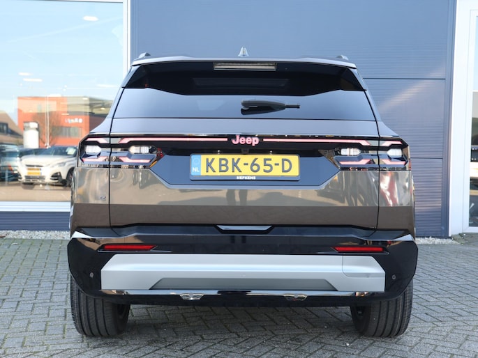 Hij is doordacht innovatief en duurzaam als geen ander: de elektrische Jeep Compass biedt met zijn elektrische aandrijving een ongekende rijervaring. Met zijn moderne accutechniek levert deze auto uitstekende prestaties, met een rijbereik dat genoeg is voor alle gewone ritten. En met een eigen laadpunt kunt u de accu's opladen terwijl u slaapt. Gemak is alles. Daarom heeft deze auto een elektrisch bediend glazen panorama dak en een elektrisch bedienbare achterklep. Behaaglijk onderweg zijn? Als bestuurder geniet u van de verwarmbare voorstoelen met massagefunctie. Net als uw bijrijder! Geen gekleum meer in de koude dagen. Het verwarmd stuurwiel voelt als een weldaad na het ijskrabben. Koplampen voorzien van de allernieuwste lichttechniek, matrix LED-verlichting. Bij de zeer complete uitrusting van deze auto behoren ook 20 inch lichtmetalen velgen, extra getint glas, verwarmde ruitensproeiers en snelheidsafhankelijke stuurbekrachtiging.