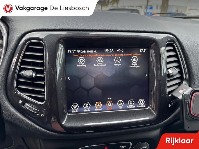 Zoals u mag verwachten van deze Jeep Compass is hij uitgerust met een reeks aan actieve veiligheidssystemen. Het Lane-keeping systeem registreert permanent of u binnen de lijnen van de rijstrook blijft; dwaalt u onbedoeld af, dan waarschuwt het systeem en corrigeert de koers. Het systeem van forward collision warning, of in gewoon Nederlands 'botswaarschuwing', treedt in werking als de sensor te weinig afstand signaleert met een voor- of tegenligger. Vermoeidsheidsherkenning herkent tekenen van vermoeidheid bij de bestuurder. Het systeem voorkomt dat er ongelukken gebeuren doordat de bestuurder in slaap valt. De veiligheid van deze auto wordt verder verhoogd door dodehoekdetectie, accident avoidance system, hill hold functie en bandenspanningcontrolesysteem.