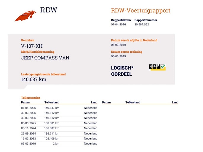 Kilometerstand gecontroleerd