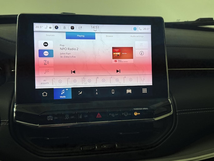 De geavanceerde technologie in deze Jeep is in staat om onderweg het verkeer om u heen te monitoren en er op te reageren. Zo hebt u als het ware een automatische co-piloot aan boord. Een belangrijke bijdrage aan de veiligheid onderweg levert de verkeersbord-detectie. Keep your lane? Het Lane-keeping systeem zorgt er automatisch voor. In een noodsituatie waarschuwt forward collision warning bij een dreigende aanrijding met een voorligger. U bent mede dankzij hill hold functie, vermoeidheidsherkenning, autonoom remsysteem en bandenspanningcontrolesysteem steeds veilig onderweg.
