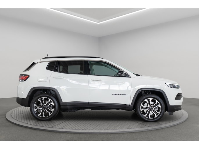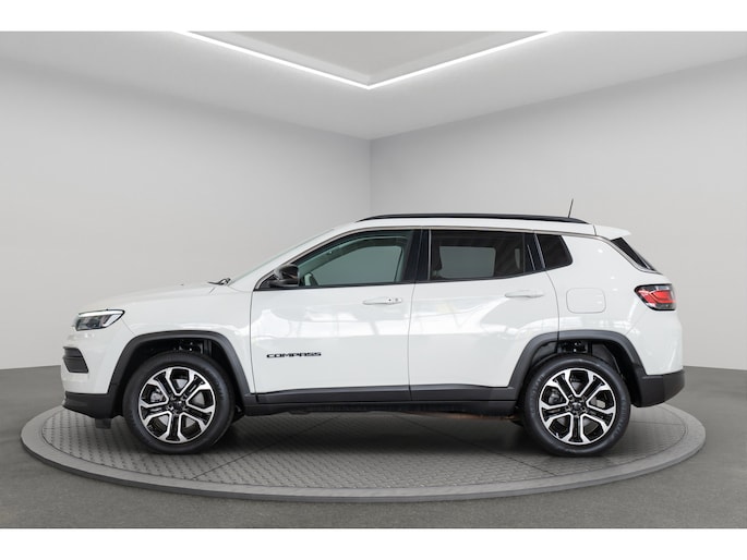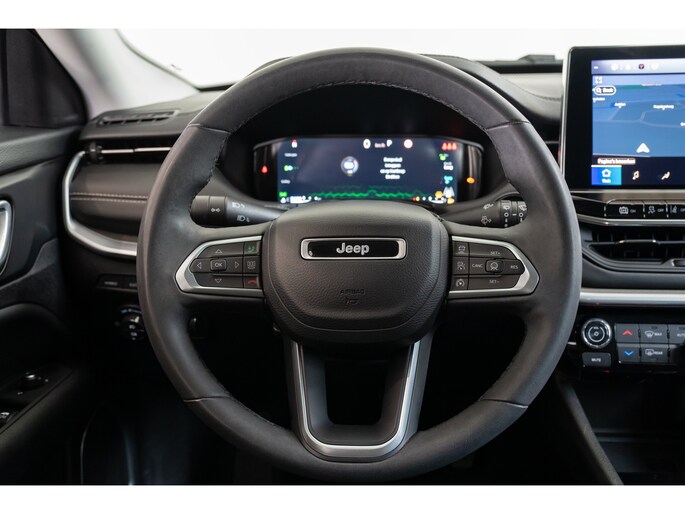 In het moderne verkeer hebt u achter het stuur van de Jeep Compass altijd de controle. Deze auto komt uit 2023. Deze hybride heeft dankzij de extra elektromotor een zeer laag brandstofverbruik. De elektrisch bedienbare achterklep opent met een druk op de knop. In deze auto profiteert u onder andere ook van: 18 inch lichtmetalen velgen, led-koplampen, trailer assistent, in hoogte verstelbare passagiersstoel, extra getint glas en in delen neerklapbare achterbank. Het digitale dashboard zorgt voor een super functionele display van reisinformatie. Parkeer en kijk niet om! De achteruitrijcamera doet dat voor u. Adaptive cruise control is een comfortabele en veilige optie. Het systeem reguleert de snelheid en houdt automatisch afstand tot uw voorligger. Hoe is het met de banden, de accu en andere onderdelen? Connected Services maakt het inzichtelijk, 24/7 via de app. U kunt het audio-installatiesysteem met DAB-ontvangst en het full map navigatiesysteem bedienen met de knoppen op het stuur of zelf met uw stem. Natuurlijk behoren automatische airconditioning, draadloos opladen, regensensor, keyless entry, automatisch dimmende binnenspiegel en elektronische parkeerrem ook tot de uitrusting van deze complete auto. Het rijden met deze Jeep wordt nog meer ontspannen dankzij de innovatieve technieken die onderweg over uw veiligheid waken. In het instrumentarium kunt u bovendien de verkeersborden zien die u onderweg tegenkomt. Zo helpt deze Jeep u om veiliger te rijden. Het Lane-keeping systeem zorgt voor een automatisch constante positie binnen de rijstrook. Afdwalen is uitgesloten. Deze auto waarschuwt de bestuurder als die tekenen van vermoeidheid vertoont en kan zo ernstige ongelukken voorkomen. Verder is deze auto uitgerust met hill hold functie, frontale botsbescherming en bandenspanningcontrolesysteem. Klinkt dit allemaal aantrekkelijk? Maak dan een afspraak met onze verkoper!