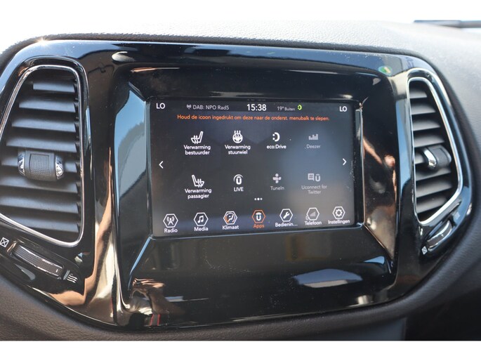 Met adaptive cruise control houdt deze auto automatisch afstand tot uw voorligger. Houdt uw ogen op de weg en uw handen aan het stuur. Het audio-installatiesysteem met dab-ontvangst bedient u vanaf het stuurwiel. Of het buiten nu warm is of koud, dankzij automatische airconditioning is het binnen altijd behaaglijk. Boem is ho? Niet bij deze Jeep Compass. De piepjes van de parkeersensoren waarschuwen u op tijd voor obstakels. De snelheid en interval van de ruitenwissers worden bij neerslag op maat aangestuurd via het regensensor. En dan is deze auto ook nog eens voorzien van keyless entry, automatisch dimmende binnenspiegel en toerenteller.