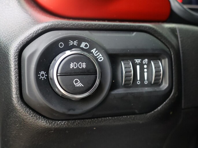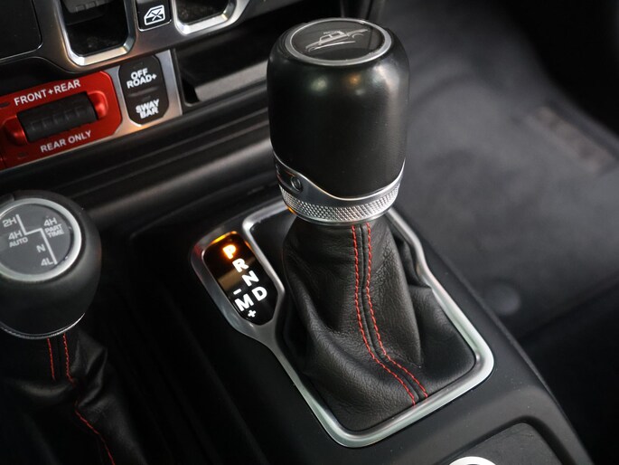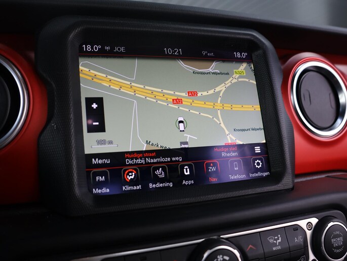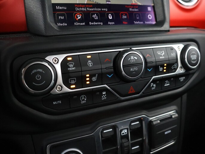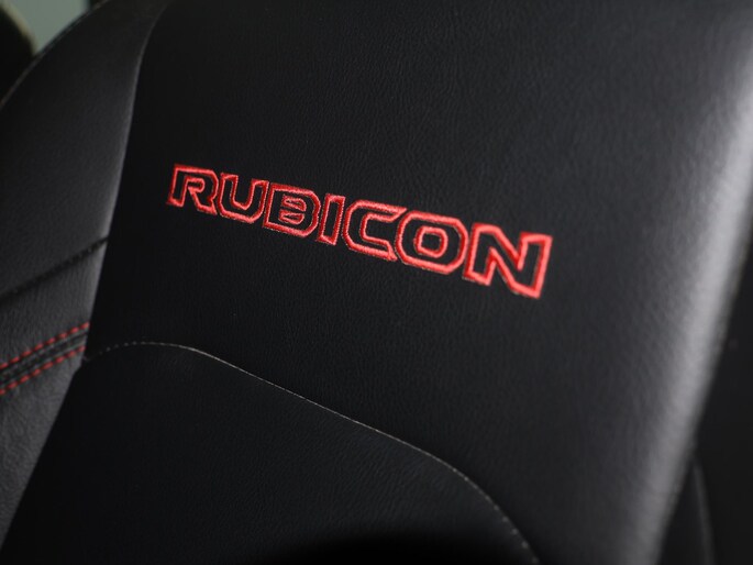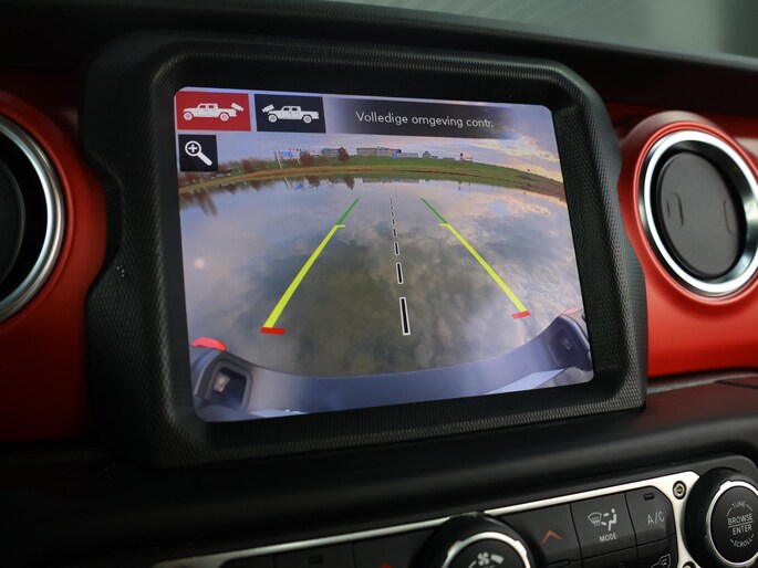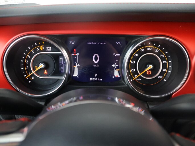 Het interieur sluit perfect aan bij het stoere karakter van de Rubicon. De lederen bekleding met rode accenten, het herkenbare Rubicon-dashboard en de solide afwerking geven de cabine een luxe, maar tegelijk functionele uitstraling. Er is ruimte voor vijf personen en dankzij de pick-up laadbak blijft hij praktisch inzetbaar voor werk en vrije tijd. Dit is een Jeep die gemaakt is om gebruikt te worden, zonder in te leveren op comfort of uitstraling.