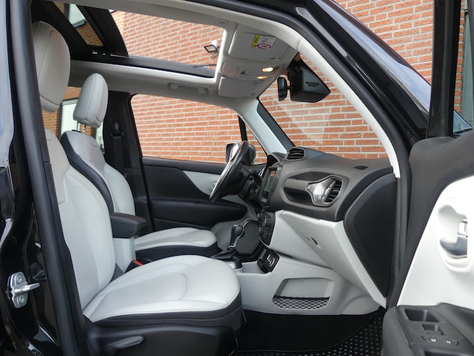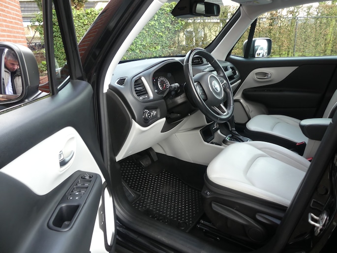 Met een auto als deze Jeep Renegade komt u absoluut goed voor de dag. Deze auto uit 2019 heeft 88031 kilometer gereden. De krachtige motor geeft deze Jeep uitstekende prestaties. Topklasse: daar hoort leren bekleding absoluut bij. Doe maar luxe! Neem plaats in de verwarmbare voorstoelen en voel de weldaad in koude dagen. Voel die ruimte eens! Lekker veel licht door het elektrisch bediende glazen panoramadak. Tot de uitrusting van deze Jeep behoren ook 19 inch lichtmetalen velgen, LED koplampen, donker getint glas achter, in delen neerklapbare achterbank, LED-achterlichten en verstelbare lendensteunen.