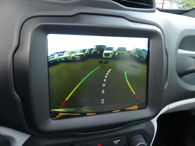 Zoals u mag verwachten van deze Jeep Renegade is hij uitgerust met een reeks aan actieve veiligheidssystemen. Wat deze auto ook kan, is lezen. Hij 'leest' voor u de verkeersborden tijdens de rit en attendeert u erop door ze op het dashboard te projecteren. Mooi binnen de lijnen van de rijstrook blijven? Het Lane-keeping systeem helpt altijd een handje. Forward collision warning helpt u om kop-staart aanrijdingen te voorkomen. De auto is ook uitgerust met dodehoekdetectie, autonoom remsysteem en bandenspanningcontrolesysteem.