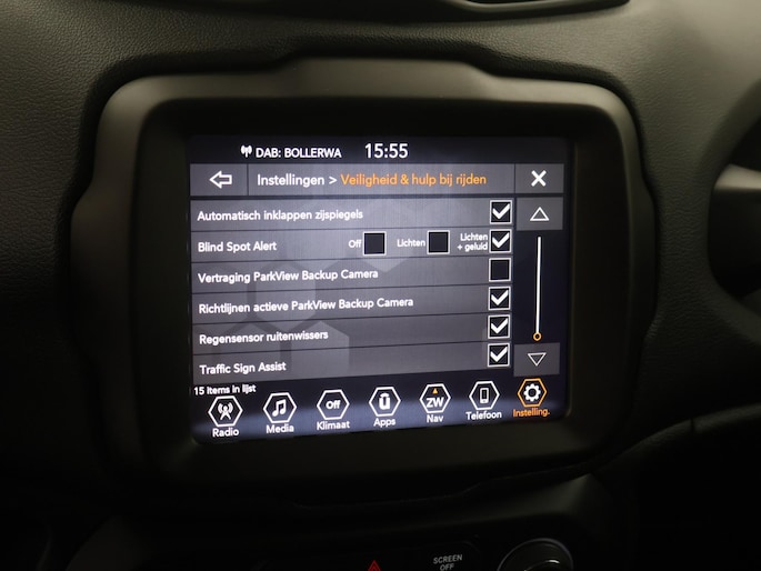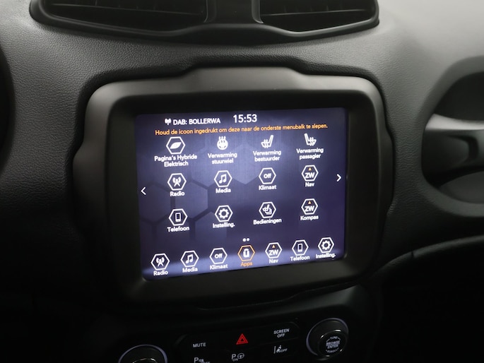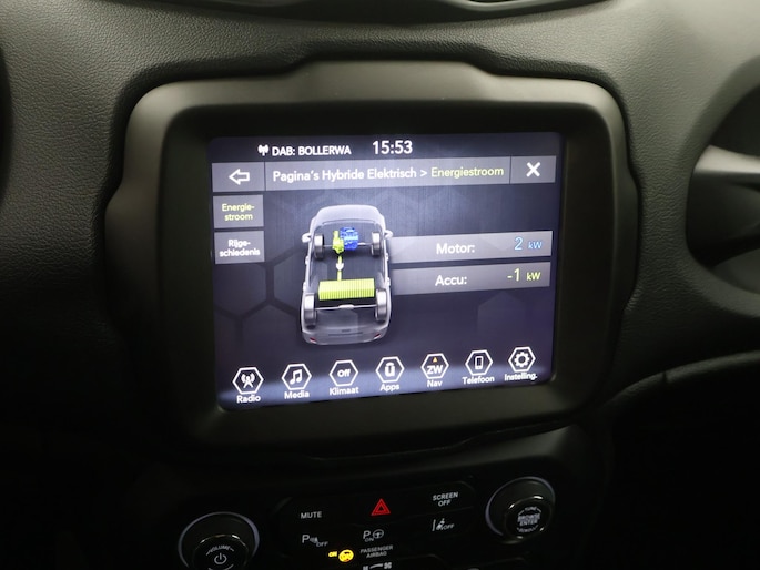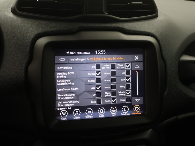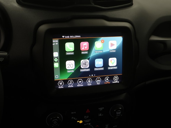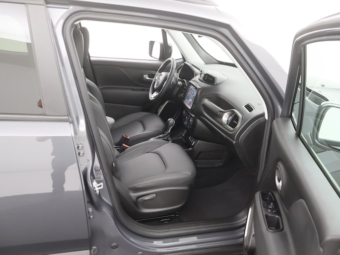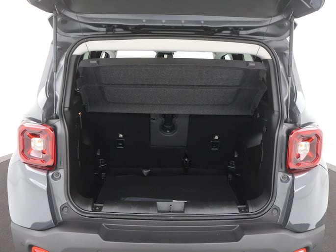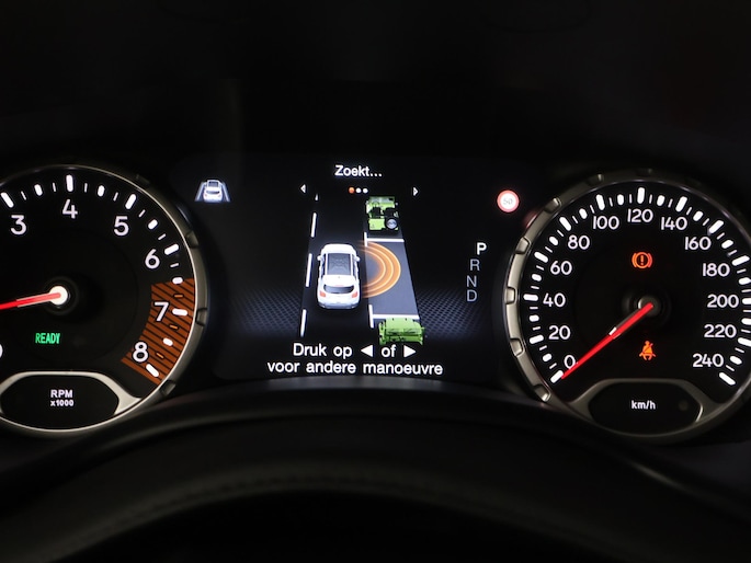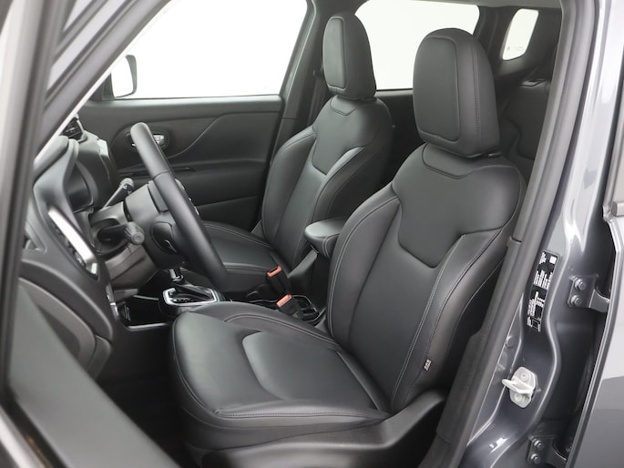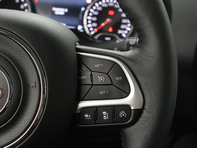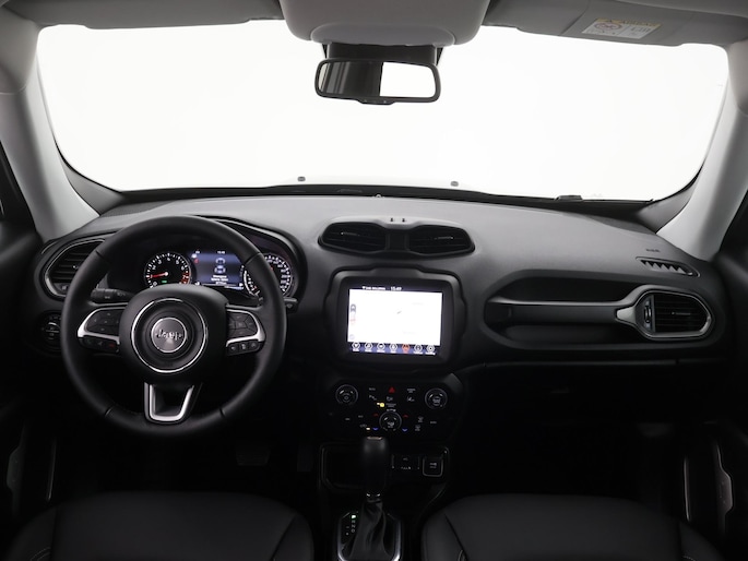De achteruitrijcamera geeft u duidelijk zicht op de ruimte achter de auto. Adaptive cruise control houdt de ingestelde snelheid vast en houdt automatisch afstand tot uw voorligger. In deze Renegade vindt u schakelaars op het stuur om het full map navigatiesysteem te bedienen en het audiosysteem met DAB-ontvangst. Dankzij automatische airconditioning is het interieur behaaglijk warm of verfrissend koel. Het hoort bij een intelligente auto als deze dat hij zelf in staat is om zijn omgeving in de gaten te houden. Dat doet deze Jeep met een automatisch inschakelbare verlichting en een regensensor. De uitrusting van deze auto is met keyless entry, automatisch dimmende binnenspiegel, centrale deurvergrendeling met afstandsbediening en lederen versnellingspook behoorlijk compleet.