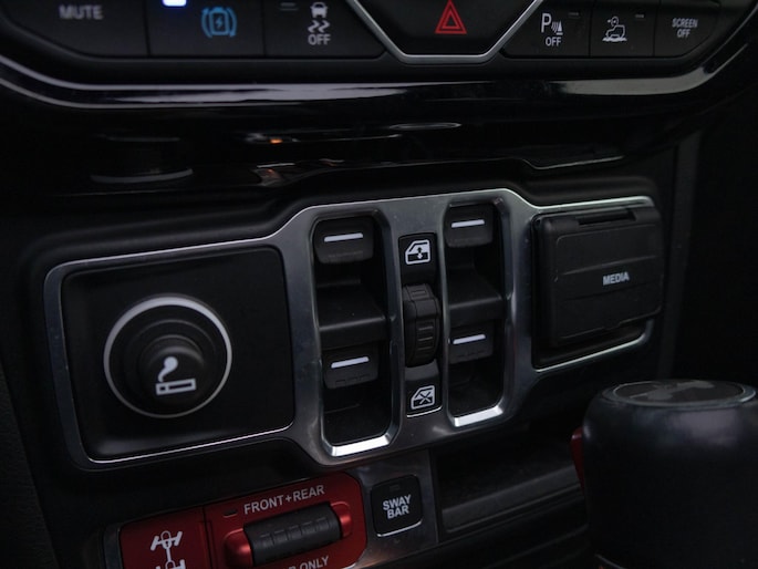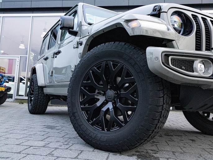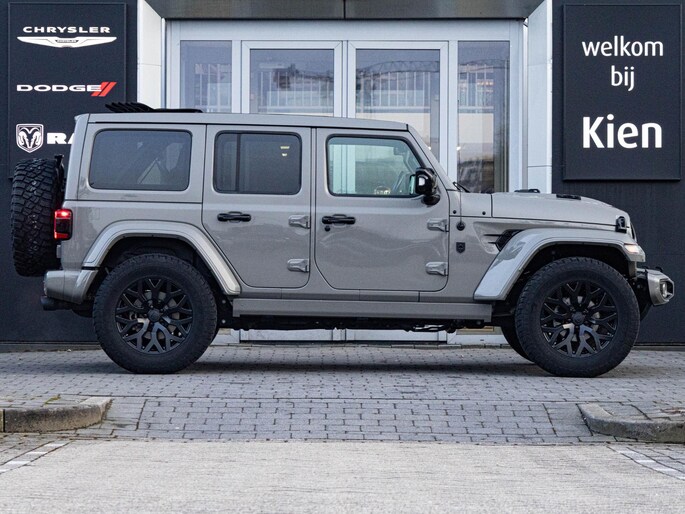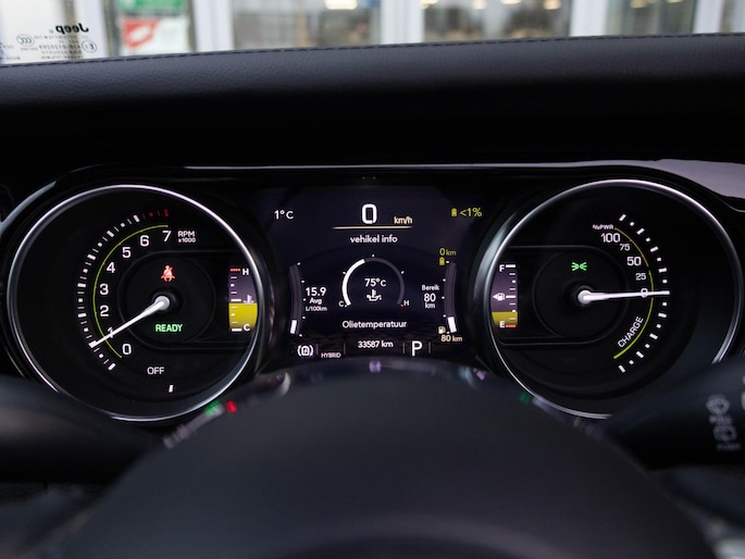 Onder de motorkap ligt de krachtige 4xe plug-in hybride aandrijflijn met 380 pk. Daarmee combineert deze Wrangler brute prestaties met de mogelijkheid om volledig elektrisch te rijden op kortere afstanden. De automatische transmissie schakelt soepel, terwijl het Rubicon onderstel, vierwielaandrijving en terreinmodi zorgen voor maximale controle buiten de gebaande paden. Dit is een auto die zich net zo thuis voelt in de stad als op ruig terrein.