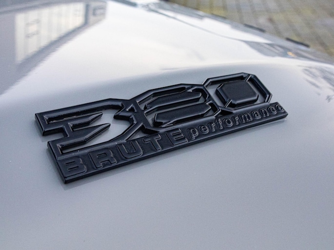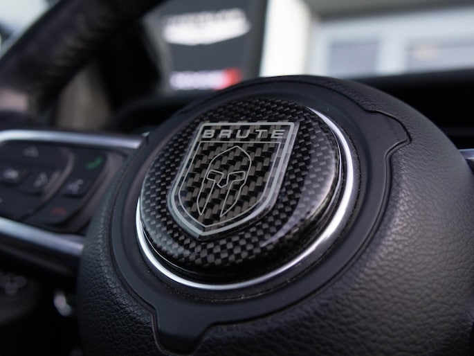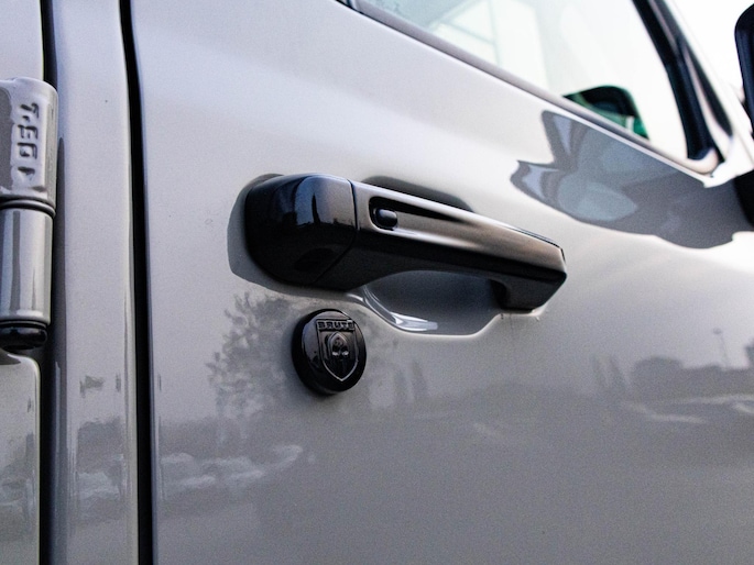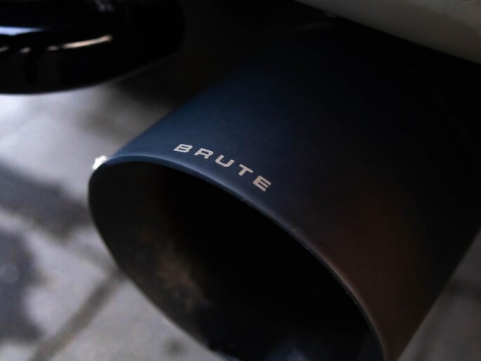Deze Jeep Wrangler 4xe is geen standaard Wrangler. Dit is de Brute Richmond uitvoering op basis van de Rubicon, een combinatie van pure terreinprestaties en exclusieve afwerking. De stoere kleurstelling, zwarte velgen, performance exhaust en karakteristieke details maken direct duidelijk dat dit een Wrangler is met een eigen identiteit. De treeplanken en het sun roof versterken zowel het praktische als het avontuurlijke karakter.