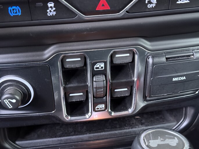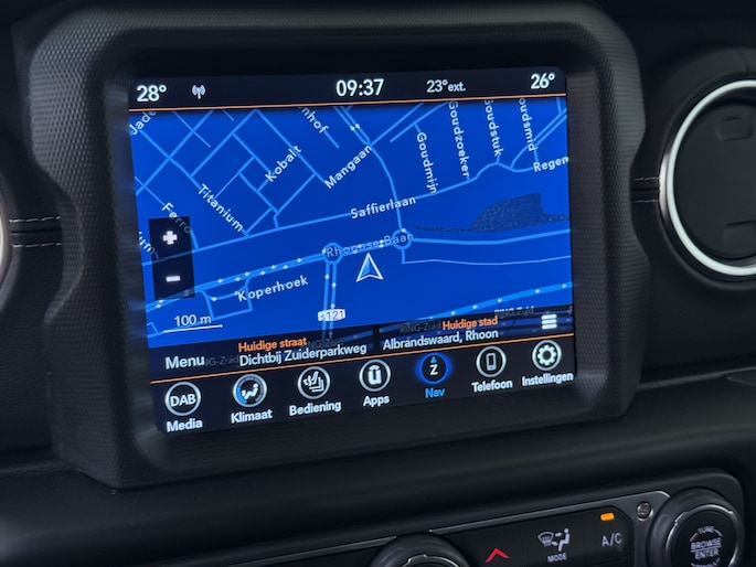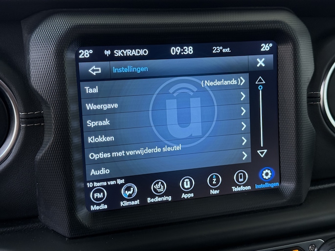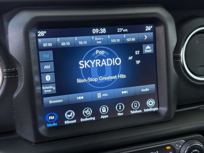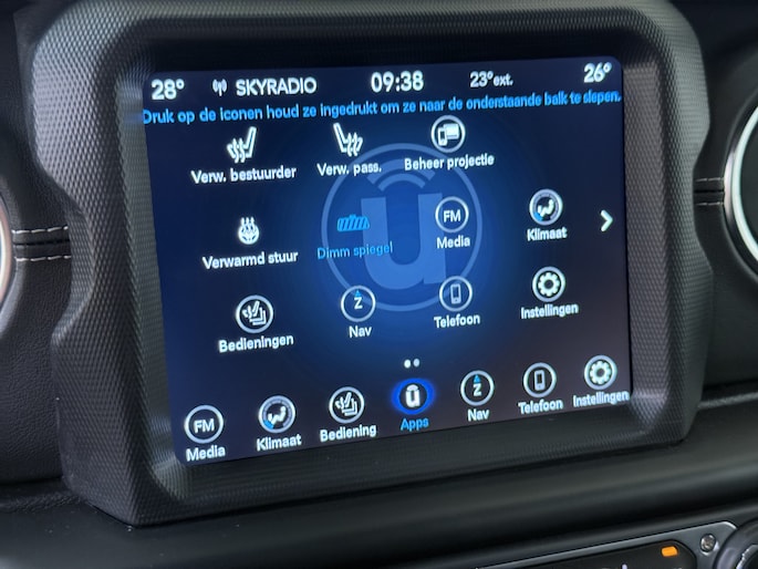 Bij het inparkeren laat de achteruitrijcamera precies zien hoeveel meter... decimeter... centimeter ruimte er nog is! Met adaptive cruise control houdt de auto zelfstandig afstand tot jouw voorligger. Een veiligheidsverhogende optie waarmee je comfortabel onderweg bent. De auto's van vandaag rijden niet alleen subliem, maar luisteren ook goed. Via een speciale app kan je overal diverse functies controleren en de status van de auto inzien. In deze Wrangler Unlimited vind je schakelaars op het stuur om het audio-installatiesysteem te bedienen en het full map navigatiesysteem. Nooit meer te warm of te koud. De automatische airconditioning zorgt altijd voor de temperatuur die jij kiest. En deze auto heeft ook automatisch dimmende binnenspiegel, lederen stuur en centrale deurvergrendeling met afstandsbediening als standaard uitrusting.