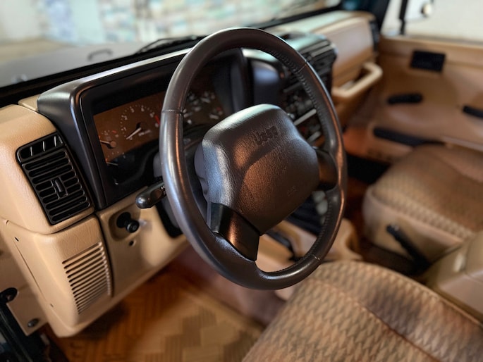 Deze TJ is afkomstig uit een droge staat in de Verenigde Staten en is daar voornamelijk gebruikt als bijauto achter een camper. De auto werd vervoerd met een zogeheten tow bar. Hierdoor zijn er relatief weinig kilometers onder eigen kracht gereden en dat zie je duidelijk terug in de algehele staat van deze Jeep.
