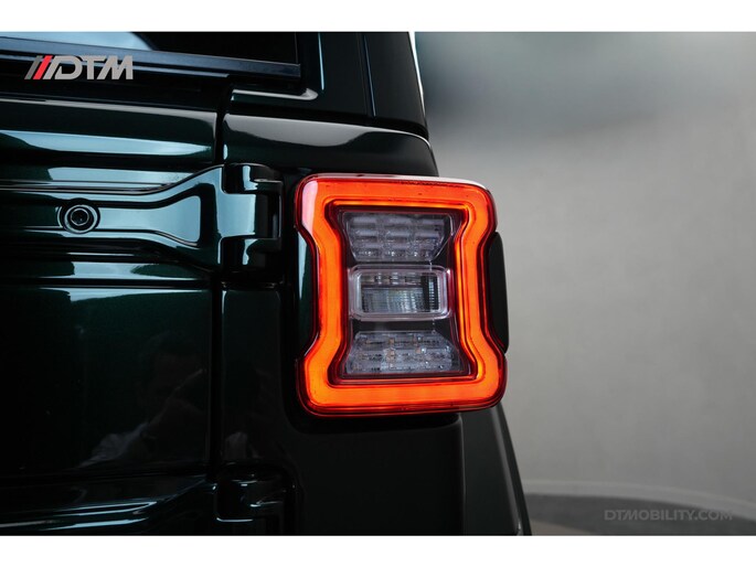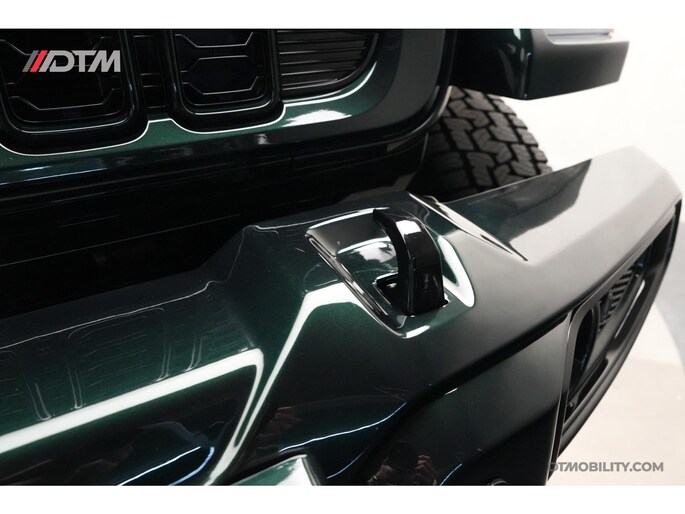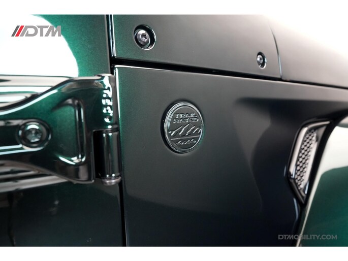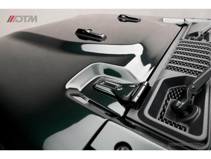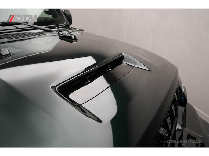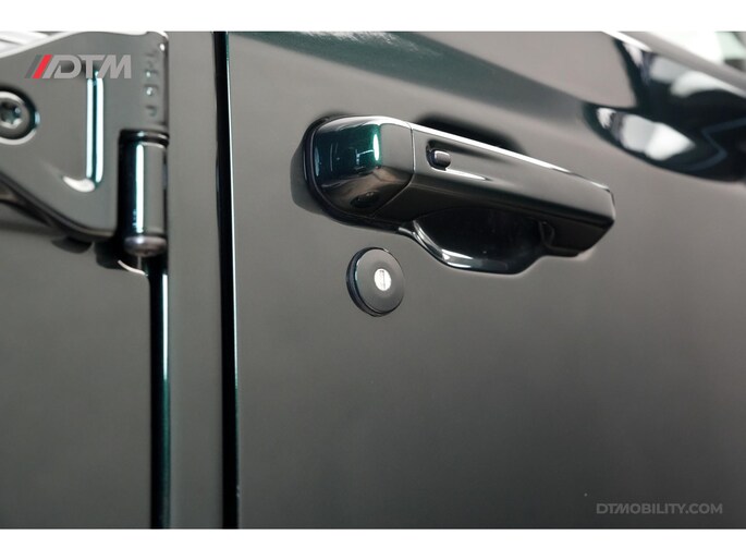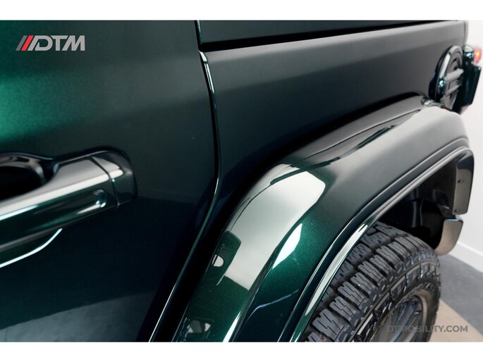 De eerste aanblik laat geen ruimte voor twijfel: dit is pure klasse. De carrosserie is volledig uitgevoerd in de iconische Porsche-kleur Emerald Green (Paint to Sample). Deze diepe, rijke groentint geeft de Jeep een tijdloze elegantie, tot in de kleinste details doorgevoerd (inclusief de instaplijsten en binnenzijde van de stijlen).