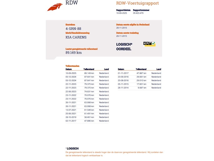 Kilometerstand gecontroleerd