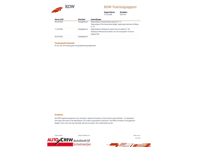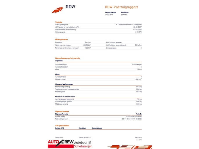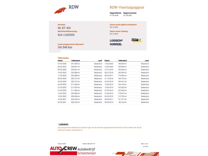 Kilometerstand gecontroleerd