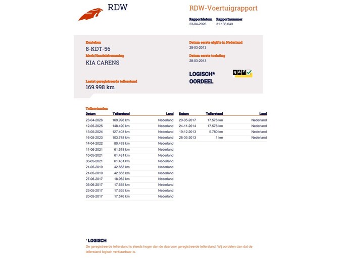 Kilometerstand gecontroleerd