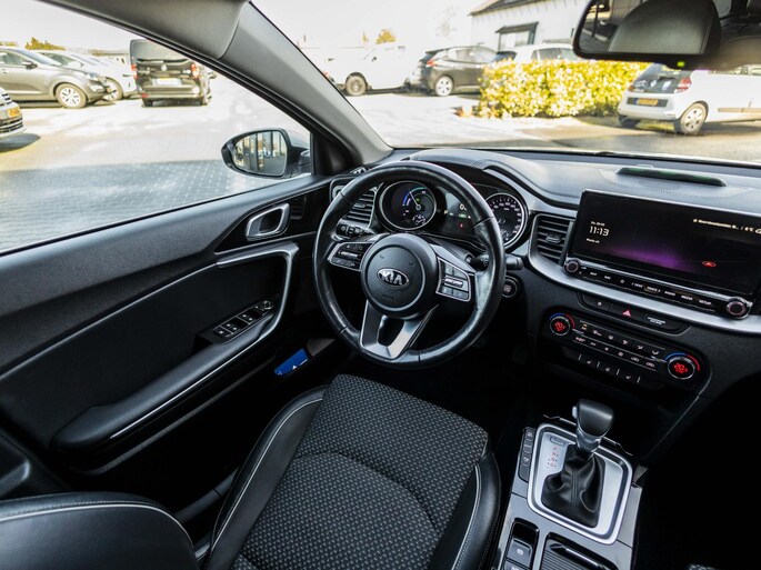 Het high performance audiosysteem produceert krachtige bassen en heldere hoge tonen. Telefoon onderweg aan de lader? Daar komt geen kabeltje aan te pas, want deze Kia Ceed Sportswagon is voorzien van een draadloze oplaadmogelijkheid voor telefoons. Verder is het systeem uitgerust met: navigatiesysteem, DAB ontvangst, multifunctioneel sportstuur, dashboard met spraakbediening en achteruitrijcamera. Dankzij electronic climate control is het interieur behaaglijk warm of verfrissend koel. De elektronische systemen in deze Kia helpen u actief om comfortabeler te rijden. Een automatisch inschakelbare verlichting en een regensensor houden de omstandigheden onderweg in de gaten.