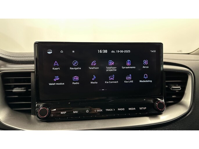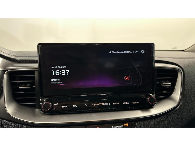 Kom maar, kom maar, kom maar... ho! Prettig hoor, zo'n achteruitrijcamera. Zo'n lekkere jonge auto heeft natuurlijk leuke extra's, zoals remote services. Met een speciale app maakt u overal verbinding met de auto. Zo kunt u functies activeren en controleren. Kies de muziek waarvan u houdt, dankzij de DAB-radio klinkt het altijd geweldig. Intussen bedient u het audiosysteem en het full map navigatiesysteem met de knoppen op het stuur of met uw stem. In een auto als deze kunt u niet zonder electronic climate control, zodat de temperatuur altijd goed is. In deze Kia kunt u zich concentreren op het verkeer, terwijl de auto de omgeving voor u in de gaten houdt. Een automatisch inschakelbare verlichting zorgt dat de verlichting aangaat als het donkerder wordt - in tunnels bijvoorbeeld - en de regensensor schakelt de ruitenwissers in als het nodig is. U hoeft er niets aan te doen. Deze Kia is voorzien van cruise control, automatisch dimmende binnenspiegel, lederen stuur, isofix-aansluiting, centrale deurvergrendeling met afstandsbediening en lederen versnellingspook.