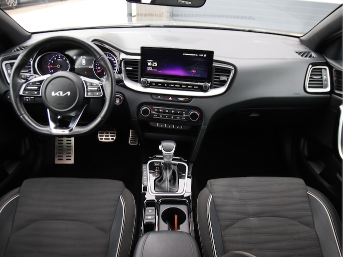 Actieprijs! Prachtige nieuwstaat Kia Ceed 1.5 T-GDi GT-Line DCT aangeboden voor € 25.950.- euro. Auto is vol opties (nieuwpirjs 38.000 euro!) o.a. voorzien van volgende opties: Sportstielen Leder alcantara bekleding, verwamrbaar stuurwiel en voorstoelen, geregelde airco, elektrisch pakket (4x ramen en elek. inklapbare spiegels), Grootbeeld Multimedia navigatie systeem met AUX/USB/Carkit/Camera/Carplay/DAB+ interface, leder multifunctioneel stuurwiel, boordcomputer, adaptieve cruise controle, keyless entry & start, parkeer sensoren voor-, achterzijde, lane assist met stuurhulp, 17 inch licht metalen velgen, metallic lak, chrome delen exterieur, etc. Auto is volledig (dealer) onderhouden, onderhoudsboekje is aanwezig bij de auto. RDW NAP teller rapport logisch verklaart (kilometrage gegarandeerd). Wegenbelasting Zuid-Holland € 70,- per maand. OPTIONEEL Afleveringspakket: APK controle-keuring incl. onderhoudsbeurt conform richtlijn fabrikant, reinigen binnen & buitenzijde wagen, 1x nieuwe sleutel, 1/1 tank brandstof, 6 maanden garantie € 999,-. OPTIONEEL: 12 maanden BOVAG garantie tegen bijbetaling van € 499.- euro (enkel mogelijk icm met afleveringspakket). Voor meer informatie en beschikbaarheid, of voor het maken van een afspraak om deze auto te bezichtigen: EMAIL:info@autobedrijfnieuwkoop.nl, TEL: 0186-640950