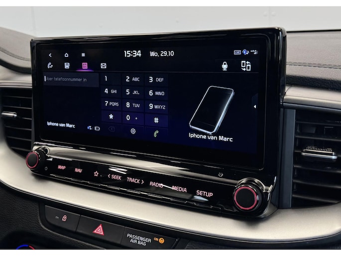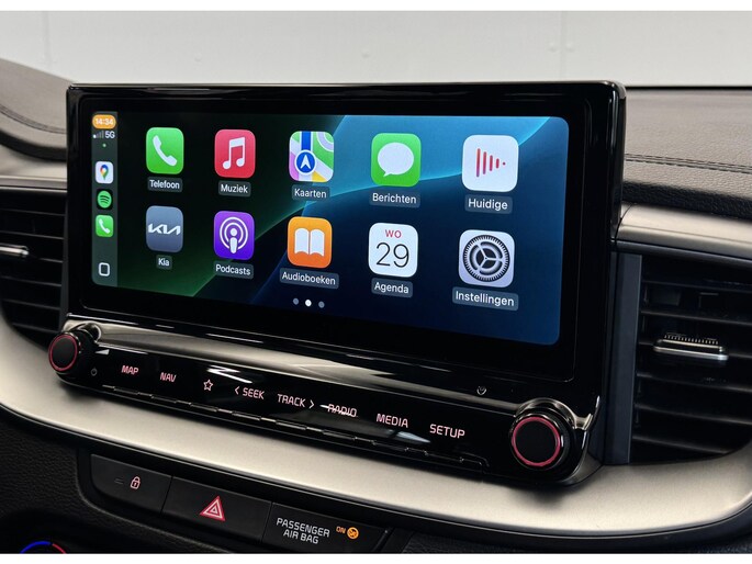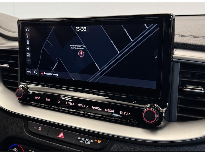 Onder alle omstandigheden perfect zicht op wat zich achter de auto afspeelt: de achteruitrijcamera zorgt ervoor! Naast handmatige bediening kunt u belangrijke functies met uw stem bedienen dankzij de ingebouwde spraakbediening. Deze Kia Ceed Sportswagon is 'connected'. Belangrijke functies worden permanent gemeten en zijn uit te lezen via een speciale app, ook op afstand. Prettig, altijd weten waar je moet zijn en hoe lang de rit nog duurt met het full map navigatiesysteem. Het spreekt voor zich dat een auto als deze ook van electronic climate control is voorzien. Ook DAB ontvangst, regensensor, automatisch dimmende binnenspiegel, lederen stuur, centrale deurvergrendeling met afstandsbediening en lederen versnellingspook zijn aan boord.