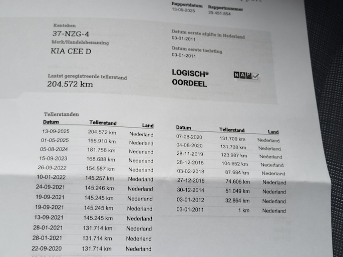 Kilometerstand gecontroleerd
