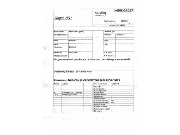 Kilometerstand gecontroleerd