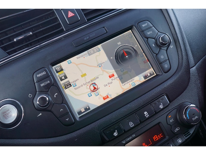 Nekkramp en verdraaide schouders zijn verleden tijd. Door de achteruitrijcamera is iedere meter achter de auto glashelder in beeld. Tot de standaard uitrusting van deze auto hoort ook electronic climate control. De elektronische systemen in deze Kia helpen u actief om comfortabeler te rijden. Een automatisch inschakelbare verlichting en een regensensor houden de omstandigheden onderweg in de gaten. Altijd uw handen vrij om deuren of bagageklep te openen, dankzij de keyless entry. Met navigatiesysteem, DAB ontvangst, automatisch dimmende binnenspiegel, centrale deurvergrendeling met afstandsbediening en lederen versnellingspook is deze Kia helemaal compleet.