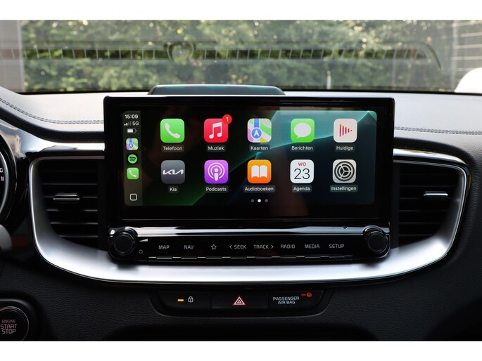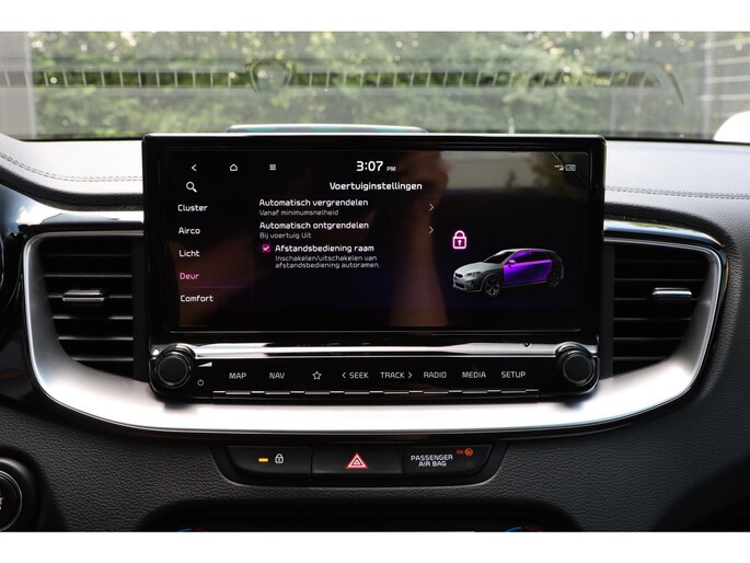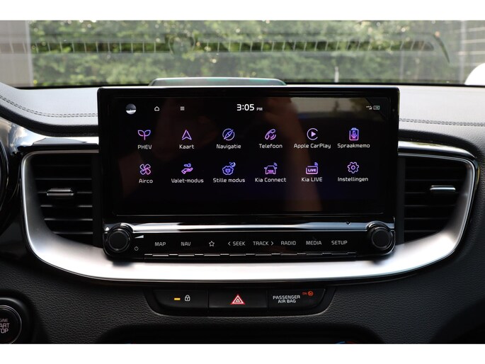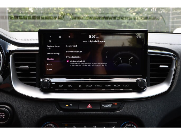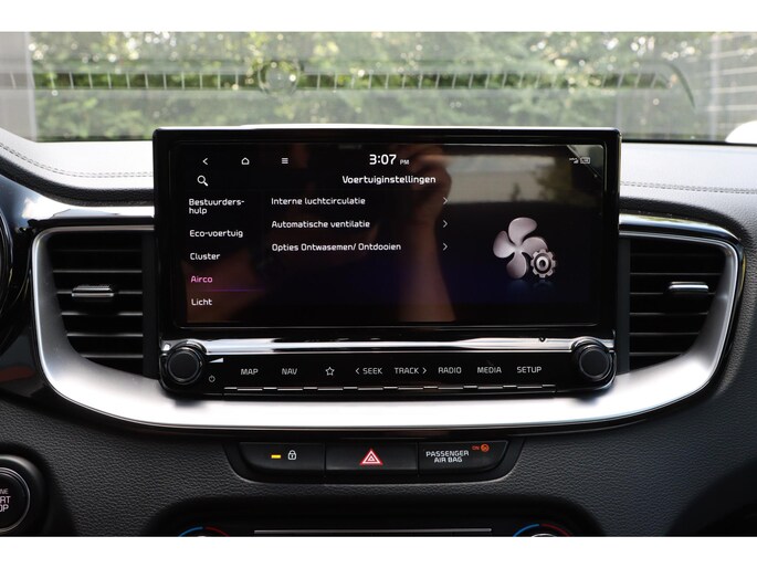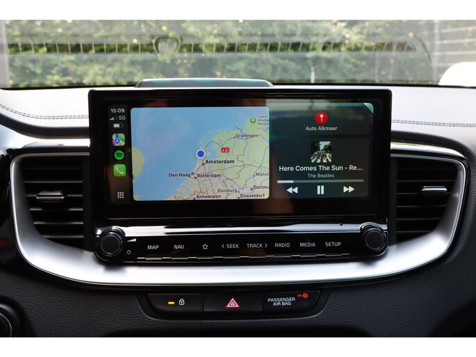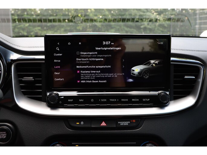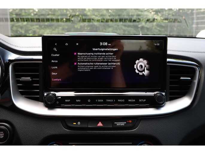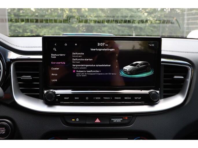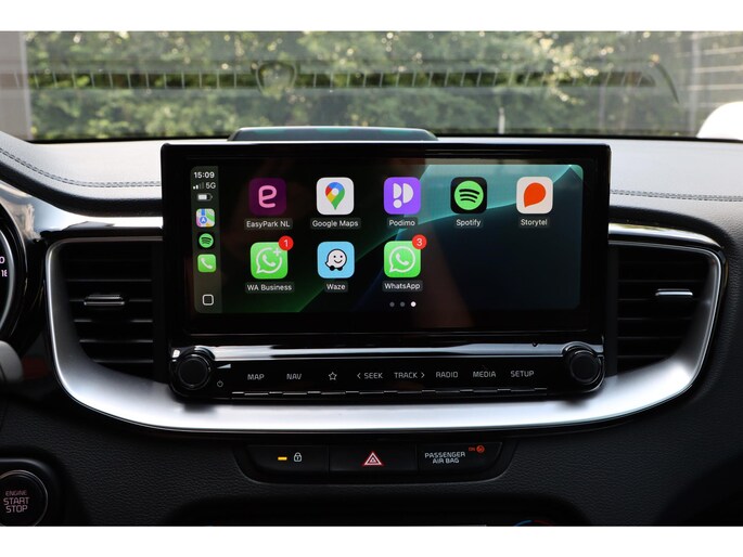 Zelfs een kleine aanrijding kan flinke kosten veroorzaken. Gelukkig laat de achteruitrijcamera precies zien wat er zich achter de auto bevindt en geeft een waarschuwingssignaal. Rijden-stilstaan, rijden-stilstaan. Niks is irritanter en vermoeiender dan filerijden. Daar heeft deze Kia Ceed Sportswagon een oplossing voor: de file assistent, die met radarmeting permanent het tempo aanpast op de voorligger. Zelfs als die stopt. Spraakbediening herkent uw stem en voert opdrachten uit terwijl u beide handen aan het stuur houdt. Deze auto gaat met u in gesprek. Hij vertelt u dankzij remote services alles over de status van diverse onderdelen en laat zich desgevraagd ook activeren. Gewoon via uw smartphone. Prettig, altijd weten waar je moet zijn en hoe lang de rit nog duurt met het full map navigatiesysteem. De uitrusting van deze auto is met electronic climate control, DAB ontvangst, regensensor, cruise control, keyless entry en automatisch dimmende binnenspiegel behoorlijk compleet.