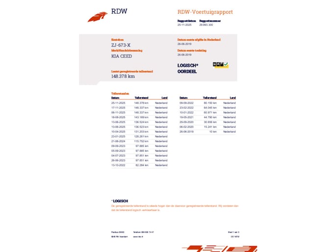 Kilometerstand gecontroleerd