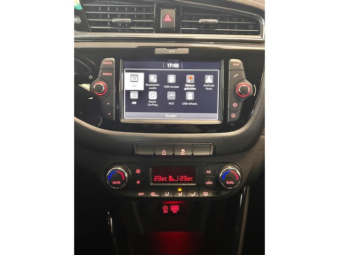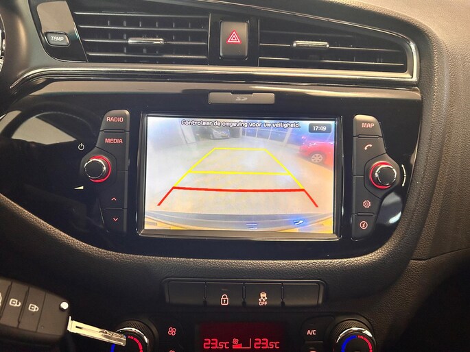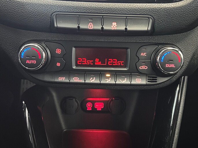 Met een gerust hart achteruitrijden? Dat kan, dankzij de achteruitrijcamera. In deze auto beschikt u natuurlijk over een navigatiesysteem. Het audio-installatiesysteem biedt glasheldere geluidskwaliteit, u bedient dit veilig via het stuurwiel. De sensoren van de achteropkomend verkeer waarschuwing registreren wat er gebeurt in de dode hoeken en achter u. U krijgt meteen een waarschuwing als u een achterligger over het hoofd ziet. Nooit meer te warm of te koud. De electronic climate control zorgt altijd voor de temperatuur die u kiest. Het luxeniveau in deze Kia is niet alleen gericht op comfort, maar ook op uw veiligheid. Tal van sensoren helpen u om de omgeving in de gaten te houden. De automatisch inschakelbare verlichting zorgt dat automatisch de verlichting wordt ingeschakeld als het donker wordt, wat bijvoorbeeld in tunnels erg handig is. En de regensensor zet de ruitenwissers aan zonder dat u eraan hoeft te denken. En deze auto heeft ook cruise control, automatisch dimmende binnenspiegel, lederen stuur, centrale deurvergrendeling met afstandsbediening en lederen versnellingspook als standaard uitrusting.