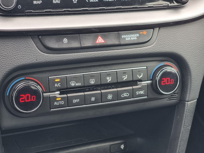 Als DynamicLine-uitvoering is deze Kia rijk uitgerust: Apple CarPlay/Android Auto, navigatie, achteruitrijcamera, cruise control (adaptief met stuurhulp), electronic climate control, LED-koplampen, parkeersensoren achter, regensensor en lichtmetalen velgen.