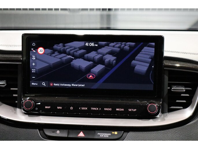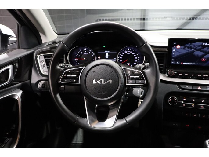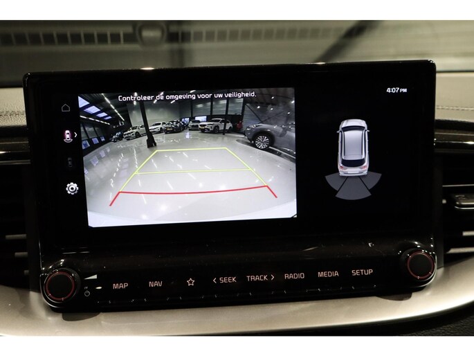 De achteruitrijcamera levert eersteklas parkeerservice. U weet precies hoeveel ruimte u nog heeft, in beeld en geluid. U weet altijd waar u moet zijn, dankzij het navigatiesysteem. Ogen op de weg, handen aan het stuur. De audiobediening op het stuur zorgt dat u probleemloos schakelt tussen zenders. Geniet van een ruime selectie digitale radiostations met de DAB-ontvanger. Ook op de korte stukken is de cruise control een uitkomst. Kijk maar bij de benzinepomp! Met airconditioning, isofix-aansluiting, centrale deurvergrendeling met afstandsbediening, boordcomputer en lederen versnellingspook is deze Kia helemaal compleet.