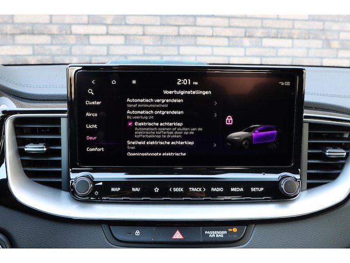 Deze Kia biedt u niet alleen comfort en rijplezier, maar ook veiligheid. Actieve veiligheidssystemen houden voor u de weg in de gaten en reageren op onvoorziene situaties voordat u dat kunt. Wat deze auto ook kan, is lezen. Hij 'leest' voor u de verkeersborden tijdens de rit en attendeert u erop door ze op het dashboard te projecteren. Het Lane-keeping systeem garandeert dat u zich niet onverhoeds buiten de lijnen van de rijstrook begeeft. Als een fiets of ander voertuig zich in de dode hoek bevindt, waarschuwt het actieve dodehoekdetectie. Dit helpt ernstige ongelukken voorkomen. Ook helpen het forward collision warning system, hill hold functie, vermoeidheidsherkenning, autonoom remsysteem en bandenspanningcontrolesysteem, uw rit tot een veilige rit te maken.