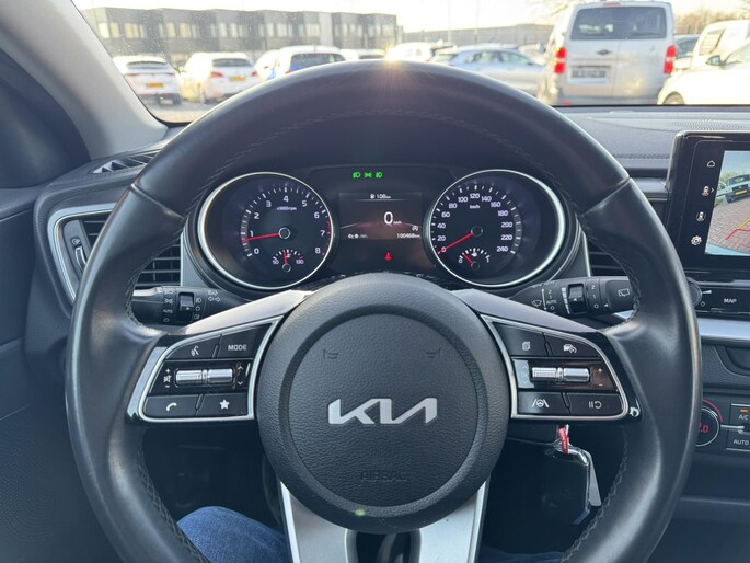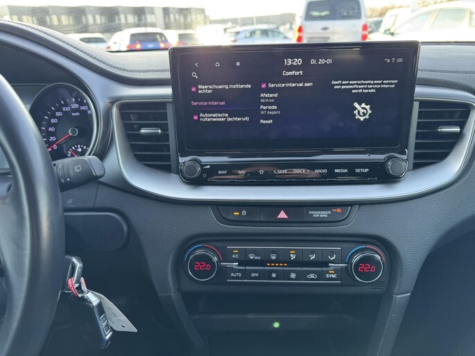 Kommaar-kommaar-kommaar, aldus de achteruitrijcamera. Iedere centimeter vrije ruimte komt haarscherp in beeld. Schadevrij inparkeren maar! Navigatie, onderhoudsstatus, vergrendeling, audio... de mogelijkheden van remote services zijn haast oneindig. Ook deze auto laat zich bedienen en analyseren via uw smartphone! Het is veiliger om altijd uw ogen op de weg te houden en uw handen aan het stuur; daarom is dit voertuig uitgerust met een audiosysteem met DAB-ontvangst en een navigatiesysteem dat kan worden bediend via het stuurwiel of spraakbediening. U verwacht natuurlijk electronic climate control in deze auto, en die is er dan ook. De auto neemt u werk uit handen doordat hij zelf veel in de gaten houdt. Een regensensor en een automatisch inschakelbare verlichting nemen waar wanneer de ruitenwissers en het licht aan moeten. Ook is de Kia uitgerust met: automatisch dimmende binnenspiegel, lederen stuur, centrale deurvergrendeling met afstandsbediening en lederen versnellingspook.