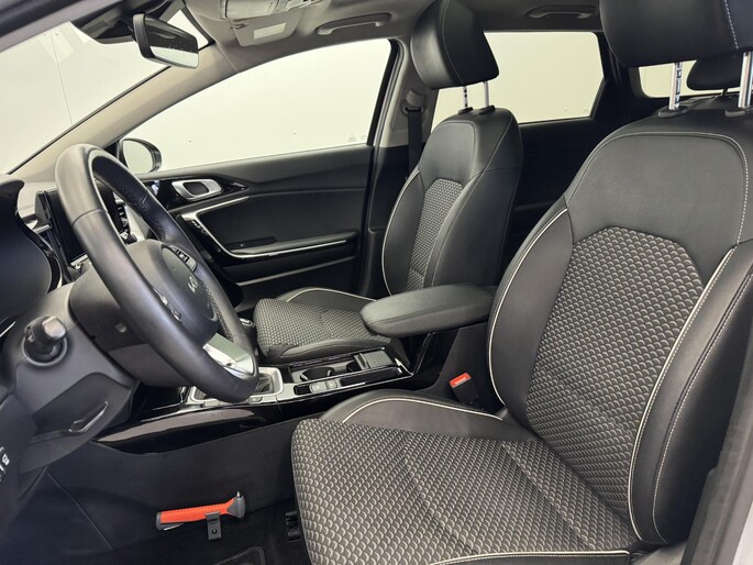 Het rijden met deze Kia wordt nog meer ontspannen dankzij de innovatieve technieken die onderweg over uw veiligheid waken. Onderweg fungeert de verkeersbord-detectie als het ware als uw bijrijder en attendeert u op de verkeersborden langs de weg. Deze Kia Ceed Sportswagon is ook behulpzaam als het gaat om een rechte koers. Het Lane-keeping systeem signaleert en corrigeert als u onbedoeld de rijstrooklijnen dreigt te overschrijden. Elke auto heeft een of meer blinde vlekken. De actieve dodehoekdetectie waarschuwt als er gevaar voor een aanrijding bestaat. Bovenop deze veiligheidsfeatures heeft deze Kia bovendien forward collision warning system, hill hold functie, vermoeidheidsherkenning, autonoom remsysteem en bandenspanningcontrolesysteem.