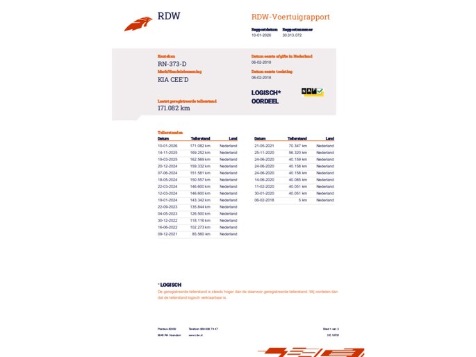 Kilometerstand gecontroleerd