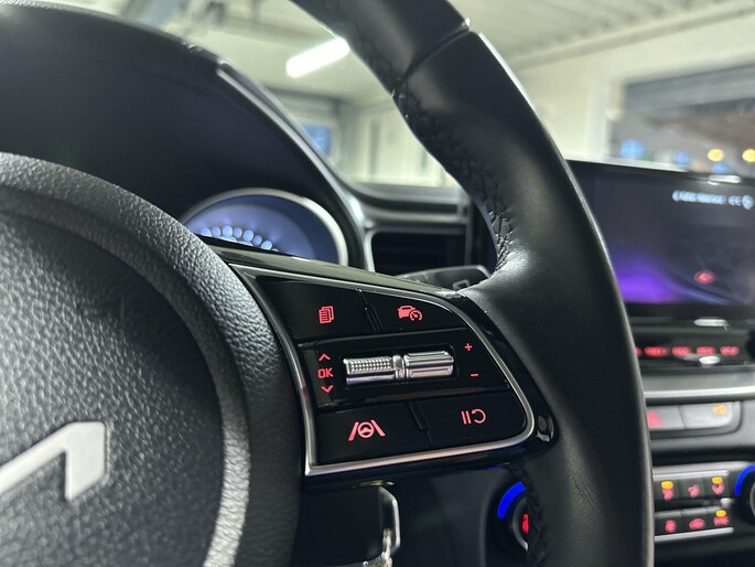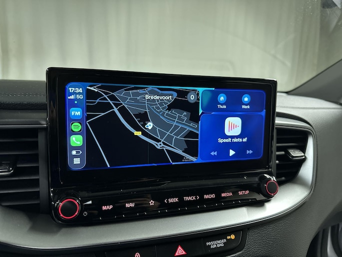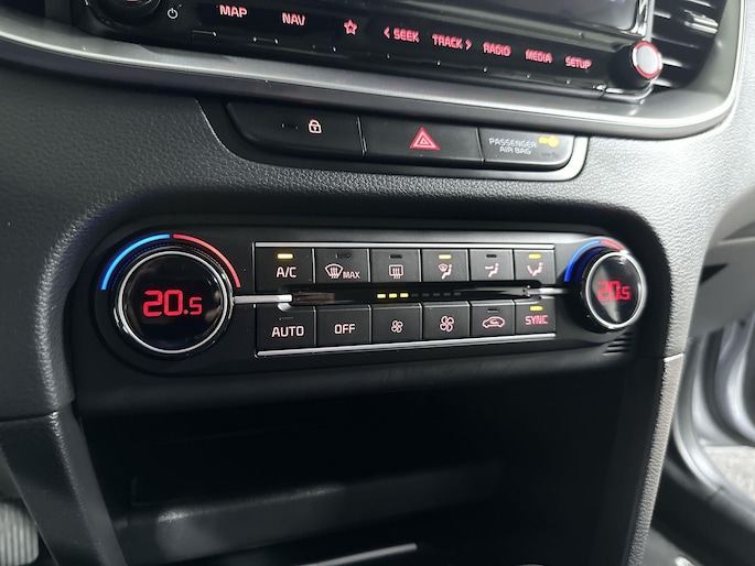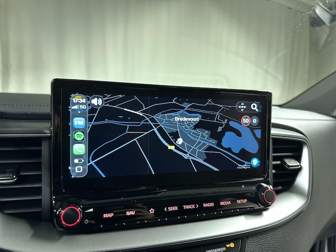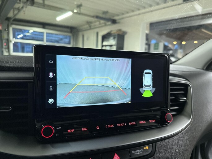 Niets achter deze auto blijft verborgen door de achteruitrijcamera. Een veilig gevoel! Hoe is het met de banden, de accu en andere onderdelen? Connected Services maakt het inzichtelijk, 24/7 via de app. Uw veiligheid op de weg wordt verhoogd door het audiosysteem met DAB-ontvangst en het full map navigatiesysteem te bedienen vanaf het stuur of met spraakbediening, zodat uw handen veilig op het stuur blijven en uw ogen gericht zijn op de weg. De electronic climate control zorgt voor een prettige binnentemperatuur. De automatisch inschakelbare verlichting en regensensor zorgen dat onderweg automatisch de verlichting en de ruitenwissers worden ingeschakeld. Daarmee nemen ze u veel werk uit handen. U bent in deze Kia ook voorzien van automatisch dimmende binnenspiegel, lederen stuur, centrale deurvergrendeling met afstandsbediening en lederen versnellingspook.