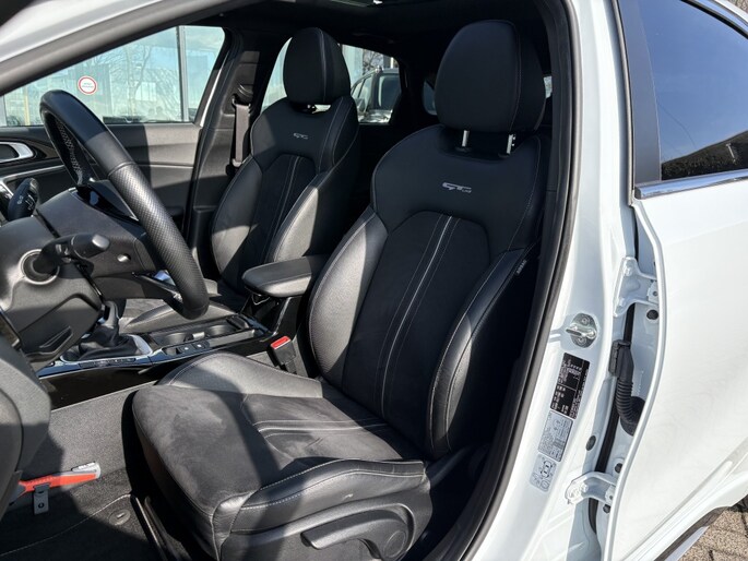 De Kia Ceed 1.0 T-GDi GT-Line uit 2022 is een benzine-auto met een krachtige 120 PK motor. Met zijn opvallende witte kleur en zijn vlotte hatchback design (beschikbaar in zowel 3 deurs als 5 deurs uitvoering), is dit een auto die zeker de aandacht zal trekken op de weg.