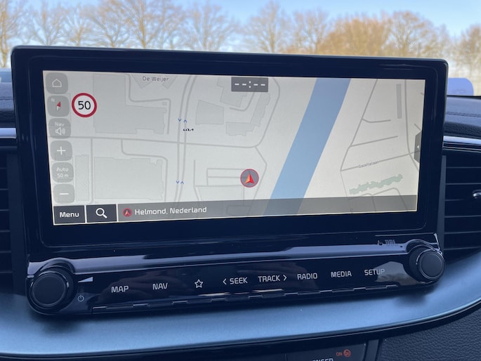 Verken de digitale wereld van mobiliteit waar het digitale dashboard alles biedt wat u nodig heeft om uw reis comfortabel te maken. Met behulp van de achteruitrijcamera kunt u zo strak inparkeren als u maar wilt! Met adaptive cruise control houdt deze auto automatisch afstand tot uw voorligger. In de file rijden vreet concentratie. Daarom komt de file assistent te hulp om veilig afstand te houden en automatisch te stoppen als uw voorligger stilstaat. Een veiligheidsverhogende optie is de ingebouwde spraakbediening. Terwijl u uw ogen op de weg houdt, bedient u de auto met uw stem. De Kia is standaard voorzien van: connected drive services, premium audiosysteem, full map navigatiesysteem, electronic climate control, draadloos opladen en DAB ontvangst.