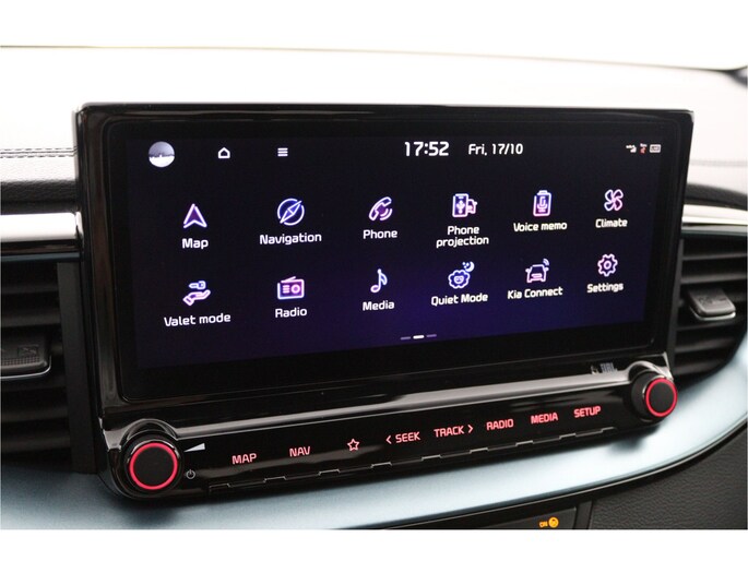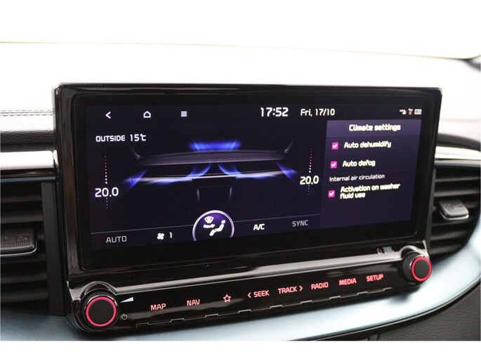 De automatische veiligheidssystemen in deze Kia fungeren als een extra paar ogen. En dat niet alleen, ze kunnen ook actief ingrijpen, om zo u en uw passagiers te beschermen. Indien u onbedoeld de rijstrook lijkt te verlaten, reageert het Lane-keeping systeem meteen en corrigeert. Deze auto heeft actieve dodehoekdetectie. Dit veiligheidssysteem helpt u om aanrijdingen te voorkomen. Botsingen met een voorligger gebeuren relatief vaak. De forward collision warning slaat tijdig alarm als dat risico ontstaat, zodat u kunt ingrijpen. Verder is deze auto uitgerust met hill hold functie, vermoeidheidsherkenning, autonoom remsysteem en bandenspanningcontrolesysteem.