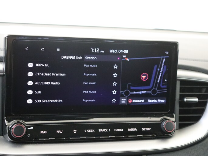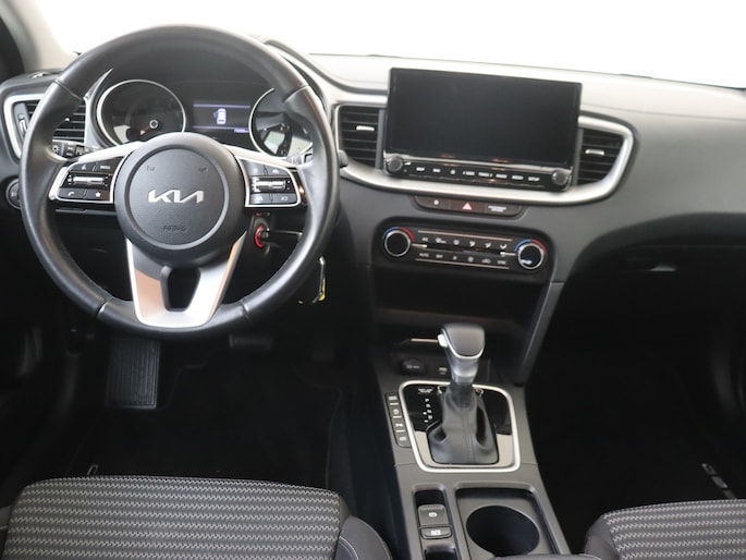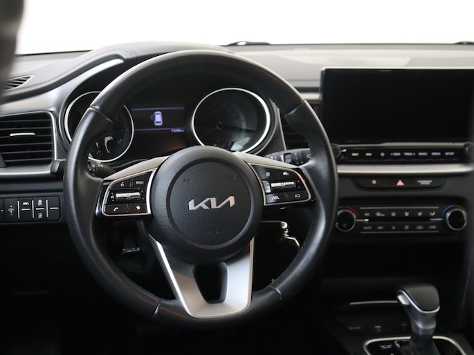 Een onopvallend paaltje of een overstekend kind achter de auto brengt risico's met zich mee. Gelukkig laat de achteruitrijcamera feilloos zien of alles veilig is. Met Connected Services wordt iedere rit nóg veiliger. In deze Ceed Sportswagon vind jij niet alleen schakelaars op het stuur om het full map navigatiesysteem te bedienen en het audiosysteem met DAB-ontvangst, maar er is ook spraakbediening. In een auto als deze kun je niet zonder electronic climate control, zodat de temperatuur altijd goed is. Achter het stuur van deze Kia ben jij niet alleen. De auto kijkt als het ware met je mee tijdens de rit. De regensensor schakelt de ruitenwissers in als het nodig is en de automatisch inschakelbare verlichting doet de lichten voor je aan. En dan is deze auto ook nog eens voorzien van cruise control, automatisch dimmende binnenspiegel, lederen stuur, centrale deurvergrendeling met afstandsbediening en lederen versnellingspook.