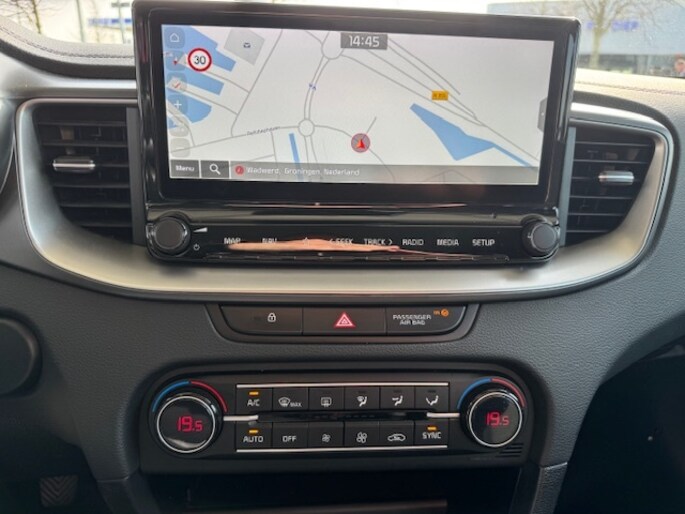 Comfortabel en veilig achteruitrijden gaat gemakkelijker dan ooit met behulp van de achteruitrijcamera. Veilig en comfortabel rijden wordt nog eens versterkt door Connected Services, zodat u diverse vitale functies van de auto altijd kunt checken in de app. Deze Kia is voorzien van spraakbediening voor het full map navigatiesysteem en voor het audiosysteem met DAB-ontvangst. Maar u kunt ook de knoppen op het stuur gebruiken. De electronic climate control zorgt voor een behaaglijk klimaat in de auto. Achter het stuur van deze Kia bent u niet alleen. De auto kijkt als het ware met u mee tijdens de rit. De regensensor schakelt de ruitenwissers in als het nodig is en de automatisch inschakelbare verlichting doet de lichten voor u aan. Natuurlijk behoren cruise control, automatisch dimmende binnenspiegel, lederen stuur, centrale deurvergrendeling met afstandsbediening en lederen versnellingspook ook tot de uitrusting van deze complete auto.