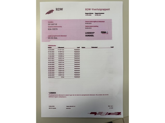 Kilometerstand gecontroleerd