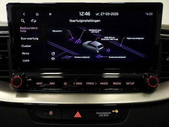Zoals u mag verwachten van deze Kia Ceed Sportswagon is hij uitgerust met een reeks aan actieve veiligheidssystemen. Het Lane-keeping systeem zorgt dat u mooi binnen de lijntjes blijft. Ongemerkt buiten de rijstrook komen is er niet meer bij. De forward collision warning geeft een botswaarschuwing als een aanrijding dreigt met een voorligger. Deze auto waarschuwt de bestuurder als die tekenen van vermoeidheid vertoont en kan zo ernstige ongelukken voorkomen. De veiligheid van deze auto wordt verder verhoogd door dodehoekdetectie, hill hold functie, autonoom remsysteem en bandenspanningcontrolesysteem.