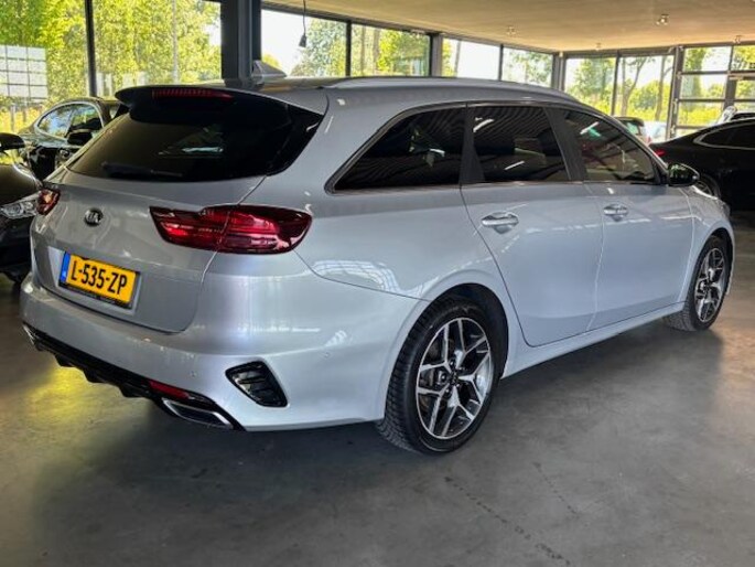 Dit voertuig heeft een maximum vermogen van 117,5 kW (160 PK), en een continu (elektrisch) vermogen van 8 kW (11 PK). Max netto totaal 176,3 pk. Met zijn inventieve techniek is de hybride KIA Ceed Sw tegelijk comfortabel en zuinig met brandstof. Op een dag rijden we allemaal elektrisch. Maar voor nu is de hybride oplossing van elektrisch en benzine ideaal! Zo ook bij deze KIA Ceed Sw. Van binnen is deze KIA Ceed Sw GT mooi uitgevoerd met een classy lederen interieur. Deze KIA Ceed Sw heeft verwarmbare voorstoelen, voor zowel bestuurder als bijrijder. Scherpe bochten, pittige acceleraties? In de sportstoelen blijft u altijd in positie. Ook 17 inch lichtmetalen velgen, LED koplampen, sportonderstel, zwarte hemelbekleding, donker getint glas achter en neerklapbare achterbank horen tot de voorzieningen op deze auto.