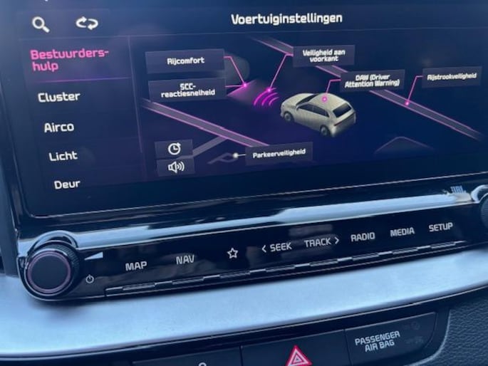 Achteruitrijden en inparkeren worden een eitje dankzij de parkeerhulp met achteruitrijcamera. Adaptive cruise control houdt de ingestelde snelheid vast en houdt afstand tot het voertuig voor u. In deze auto wordt u elke rit opnieuw bijgestaan door een gebruiksvriendelijk navigatiesysteem, terwijl u luistert naar het audiosysteem met DAB-radio en usb-aansluiting. Carplay/Android. Het spreekt voor zich dat een auto als deze ook van dual zone automatische airconditioning is voorzien. Met dashboard met spraakbediening, WIFI-hotspot, schakel flippers aan het stuur, regensensor, keyless entry en automatisch dimmende binnenspiegel is deze KIA helemaal compleet.