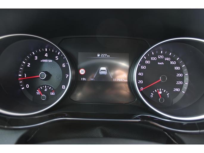 Zodra u naar de 'R' schakelt, gaat de parkeerhulp met achteruitrijcamera in werking en heeft u een perfect zicht op alles wat zich achter de auto afspeelt. De kortste weg, de zuinigste weg, de snelste weg... elke weg is te vinden met het navigatiesysteem. Natuurlijk is er ook dual zone automatische airconditioning aanwezig. Met de DAB-ontvanger luistert u naar glasheldere digitale radio. Achter het stuur van deze KIA bent u niet alleen. De auto kijkt als het ware met u mee tijdens de rit. De regensensor schakelt de ruitenwissers in als het nodig is en de automatisch inschakelbare verlichting doet de lichten voor u aan. De KIA is standaard voorzien van: cruise control met snelheidsbegrenzer, keyless entry, automatisch dimmende binnenspiegel, lederen stuur en versnellingspook, isofix-aansluiting en usb-aansluiting.