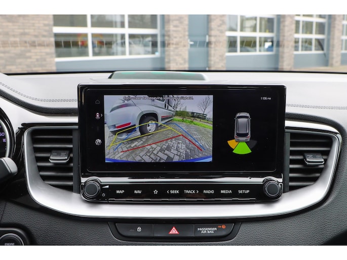 Bij het inparkeren laat de achteruitrijcamera precies zien hoeveel meter... decimeter... centimeter ruimte er nog is! Adaptive cruise control houdt de ingestelde snelheid vast en houdt automatisch afstand tot uw voorligger. Rijden-stilstaan, rijden-stilstaan. Niks is irritanter en vermoeiender dan filerijden. Daar heeft deze Kia Ceed Sportswagon een oplossing voor: de file assistent, die met radarmeting permanent het tempo aanpast op de voorligger. Zelfs als die stopt. Als u regelmatig met een aanhanger of een fietsendrager op pad bent, is de afneembare trekhaak een praktische extra. Vergeten af te sluiten? Bandenspanning onvoldoende? De speciale app geeft u direct een seintje met behulp van Connected Services. Met dashboard met spraakbediening, full map navigatiesysteem, electronic climate control, DAB ontvangst, regensensor en keyless entry is deze Kia helemaal compleet.