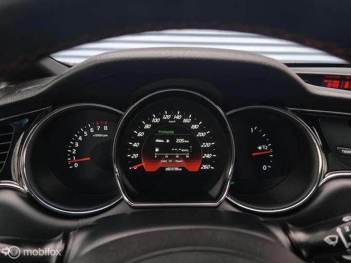 Dankzij het digitale dashboard in deze auto kan u de interface van uw cockpit personaliseren. Comfortabel en veilig achteruitrijden gaat gemakkelijker dan ooit met behulp van de achteruitrijcamera. Het navigatiesysteem en het audio-installatiesysteem (met DAB-ontvangst!) bedient u met knoppen op het stuur of met gesproken commando's. Bij het wisselen van rijbaan kan een dode hoek ontstaan waardoor achterliggers te dichtbij kunnen komen. De achteropkomend verkeer waarschuwing geeft in dat geval automatisch een signaal. Het comfort wordt verhoogd door de aanwezige electronic climate control. U bent in deze Kia ook voorzien van regensensor, cruise control, keyless entry, automatisch dimmende binnenspiegel, lederen stuur en isofix-aansluiting.