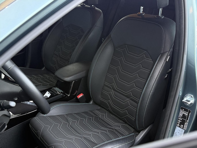 - Bekleding, stof/vegan leder combinatie met Yucca Steel Grey details en stiksels