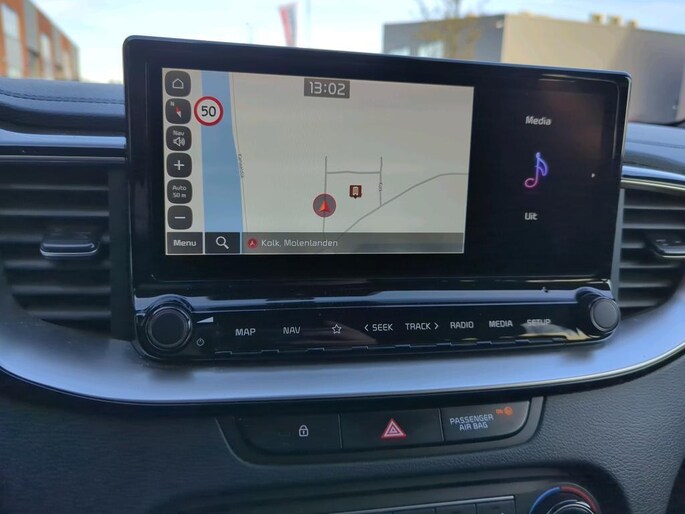Met het digitale dashboard kunt u de cockpit-interface naar uw voorkeur instellen. Afstand schatten bij het achteruitrijden? Niet nodig. U weet het precies, dankzij de achteruitrijcamera. Waar u zelf ook bent, u staat altijd in contact met de auto via de app op uw smartphone. Zo controleert u uiteenlopende functies, ook op afstand. Deze Kia is voorzien van spraakbediening voor het full map navigatiesysteem en voor het audiosysteem met DAB-ontvangst. Maar u kunt ook de knoppen op het stuur gebruiken. Kabelkluwens en stekkerslingers van smartphones zijn hier niet aan de orde. De draadloze oplaadmogelijkheid voor telefoons maakt opladen strak, simpel en snel. De uitrusting van deze Kia is met electronic climate control, regensensor, keyless entry, automatisch dimmende binnenspiegel en lederen versnellingspook behoorlijk compleet.