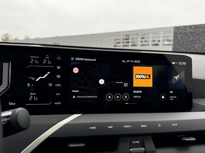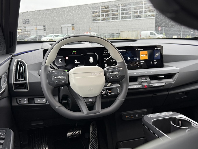 Voor het overzicht tijdens iedere rit is deze Kia EV5 voorzien van een gemakkelijk afleesbaar digitaal dashboard. De vier camera's genereren samen een 360 graden beeld rond de auto, zodat u een volledig overzicht hebt van wat er rondom uw auto gebeurt. Adaptive cruise control is een comfortabele en veilige optie. Het systeem reguleert de snelheid en houdt automatisch afstand tot uw voorligger. Spraaksturing betekent dat u verschillende functies met uw stem kunt bedienen. Als u 'm vraagt 'hoe gaat het?' geeft deze auto zelf het antwoord. Via de app op uw smartphone. U checkt de meters waar u maar wilt, of activeert diverse functies alvast. Met premium audiosysteem, full map navigatiesysteem, kruisend verkeer detectie, electronic climate control, draadloos opladen en regensensor is deze auto helemaal compleet.